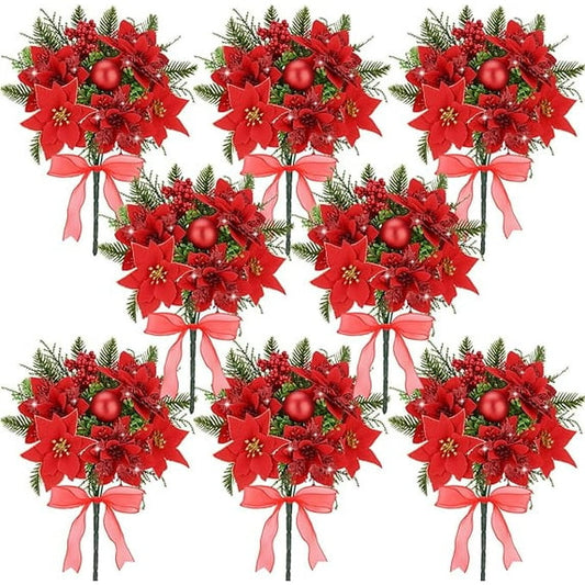 Yastouay Christmas Artificial Flowers, 8 Bouquets Poinsettia for Christmas Home, Living Room, Dining Table, Wedding Decoration