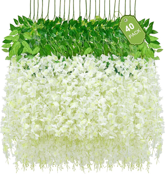 Waipfaru Wisteria Hanging Flowers,40 Pack Fake Wisteria Vine,3.6ft/Pcs Hanging Flower Garland,Silk Wisteria Flowers for Wedding Party Home Decor (Light Pink)