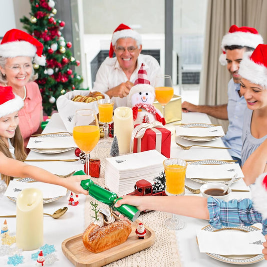 Waipfaru 100 PCS White Christmas Paper Napkins 3-Ply Silver Christmas Tree Disposable Napkins for Xmas Winter Holiday