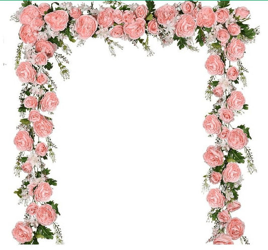 Waipfaru 2 Pack Artificial Peony Flower Garland -6ft Fake Silk Flower Vines ,Faux Artificial Floral Garland for Wedding Arch Party Table Decoration (Wine Red)