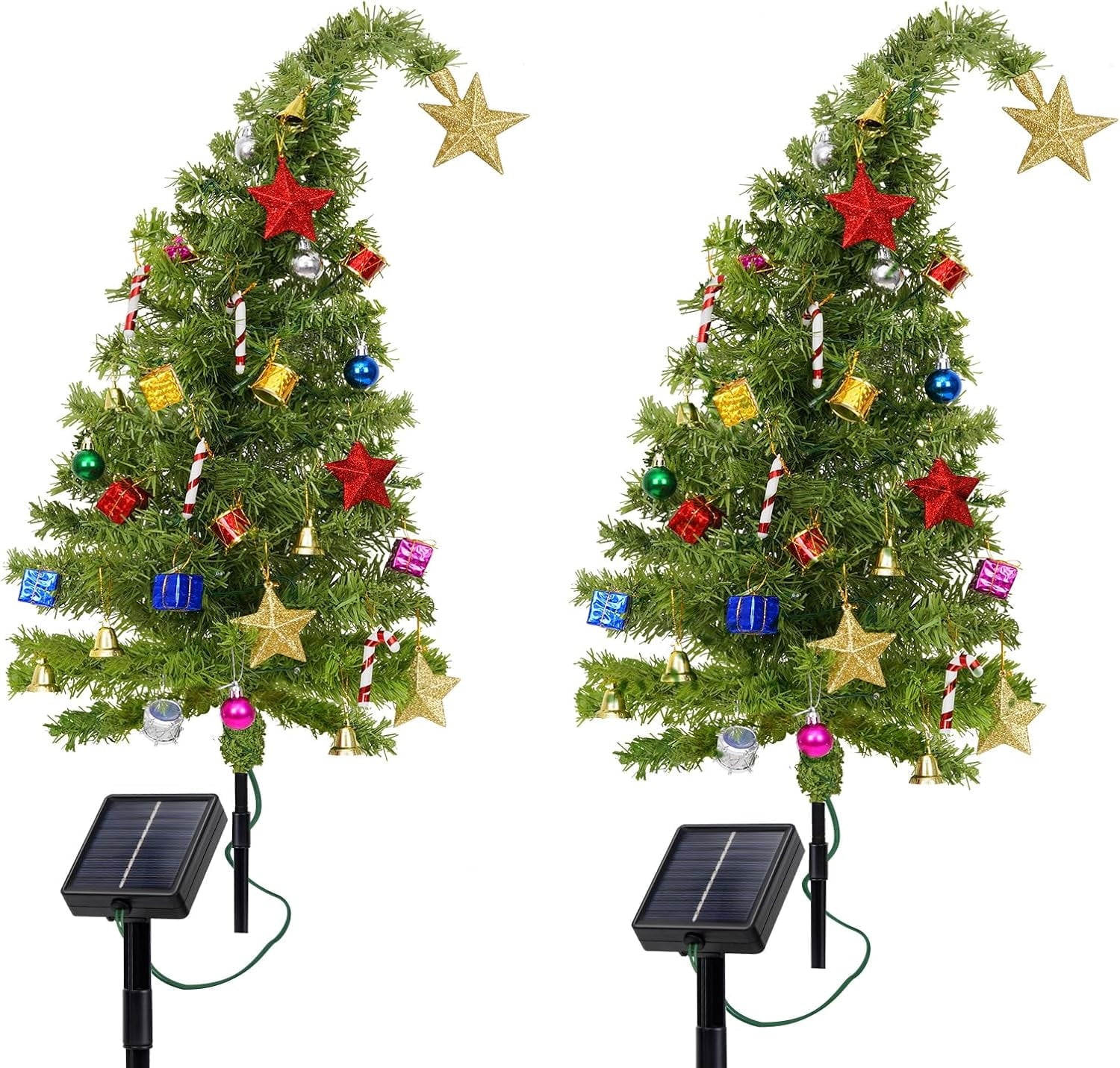 Lyacmy 2 Pack Solar Christmas Tree Outdoor Christmas Decorations, Waterproof 8 Modes Solar Christmas Lights Landscape Path Lights for Garden Yard