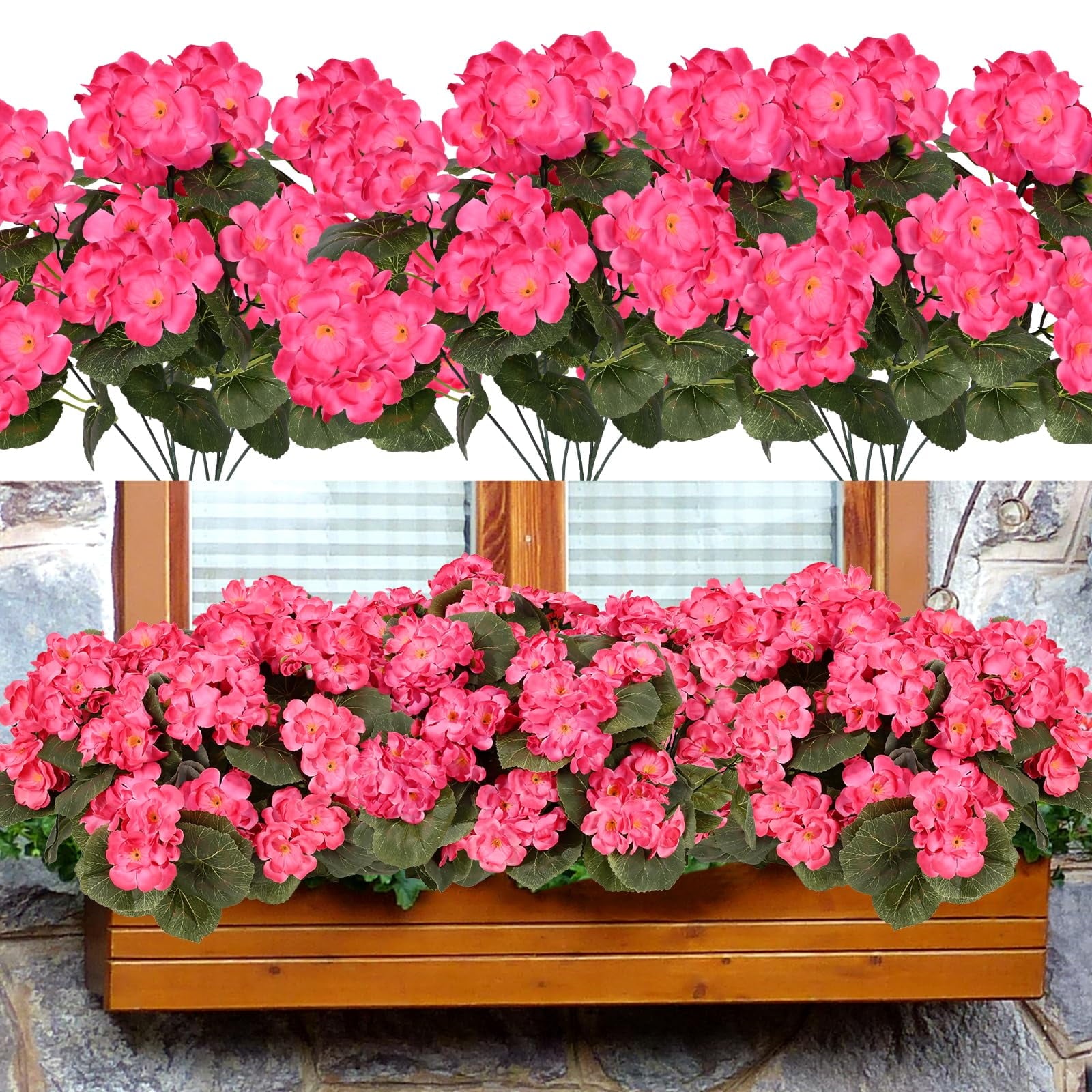 Lyacmy 4Pcs Artificial Geraniums for Outdoors Realistic Artificial Flowers, UV Resistant Fake Geraniums Silk Flowers Outdoor Decor