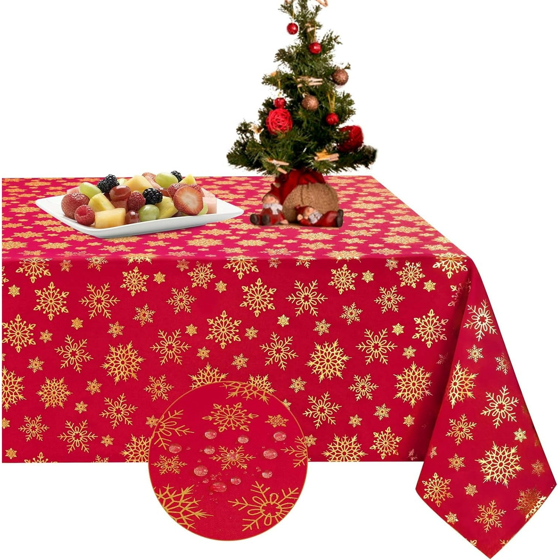 Sevenstars Christmas Tablecloth Gold Snowflake Table Cloth White Rectangle Table Cover for Dinner Party, 60" x 84"