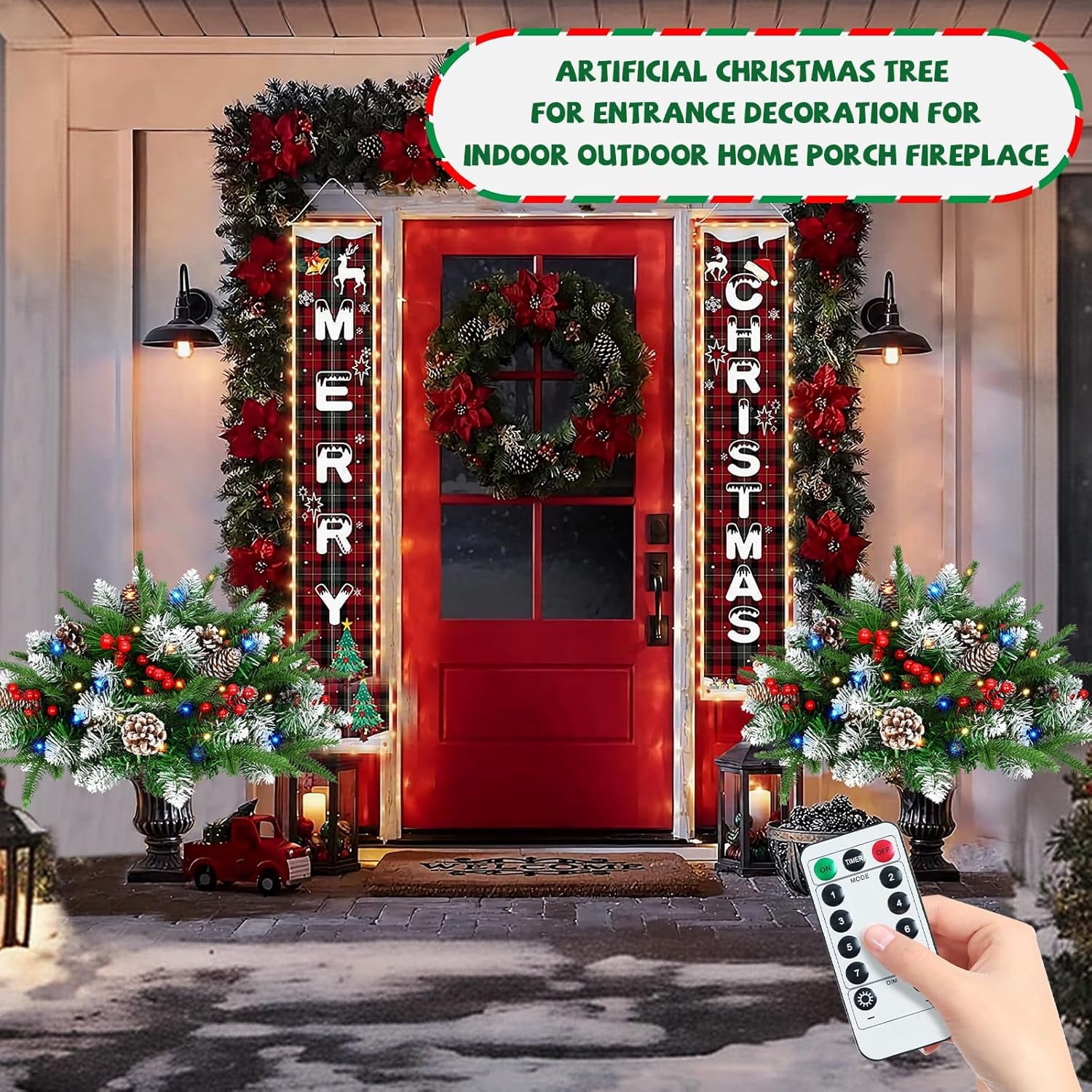 Waipfaru Set of 2 Lighted Artificial Christmas Urn Filler,21inch Pre-lit Xmas Pine Trees with Cones,Red Berries,Tripod Stake and 50 LED Lights,Outdoor Holiday Home Decor