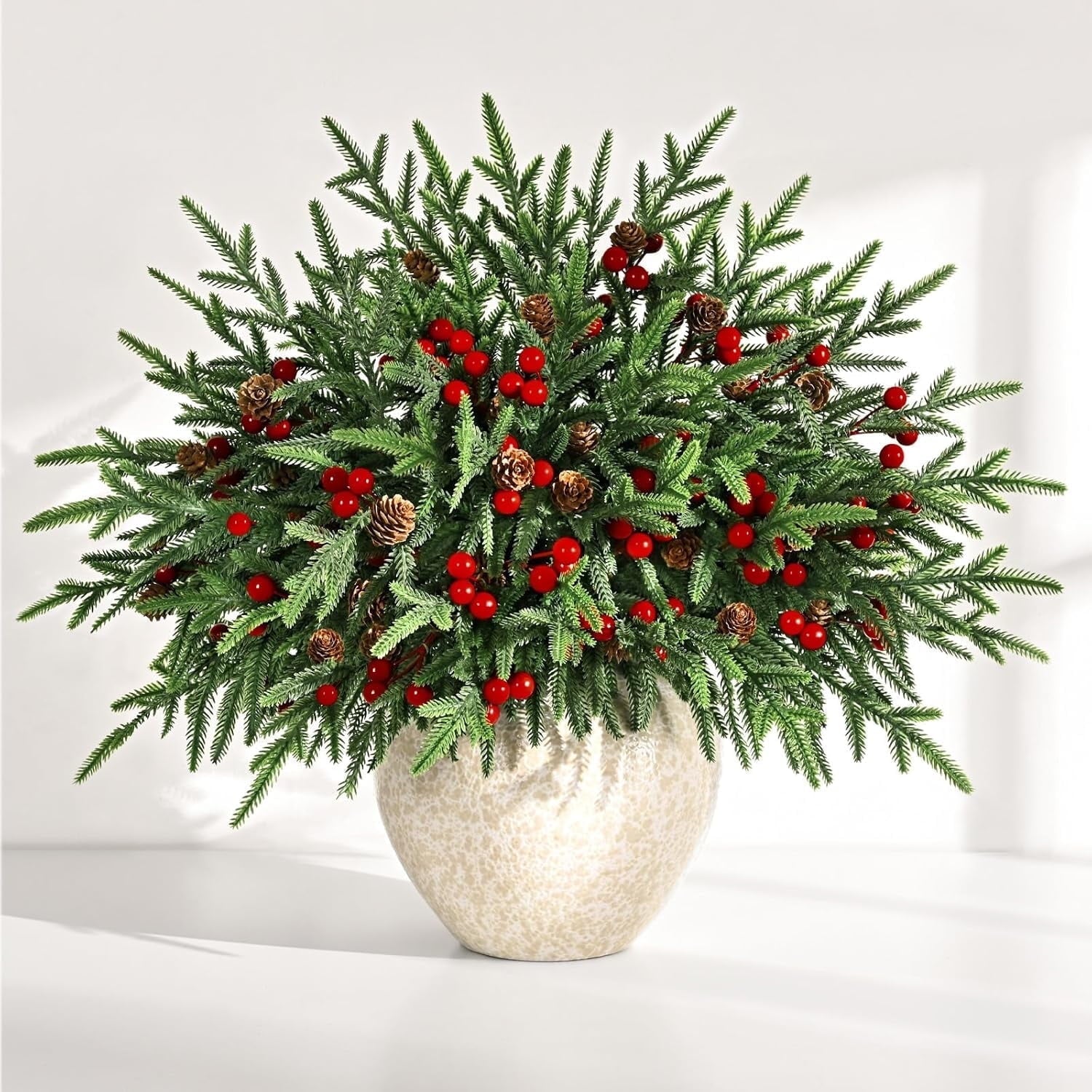 Yastouay 12 Pcs Christmas Norfolk Pine Branches, Artificial Norfolk Pine Branch Faux Cedar Pine Stem Fake Greenery Pine Picks for Vase DIY Garland Wreath Home Decoration